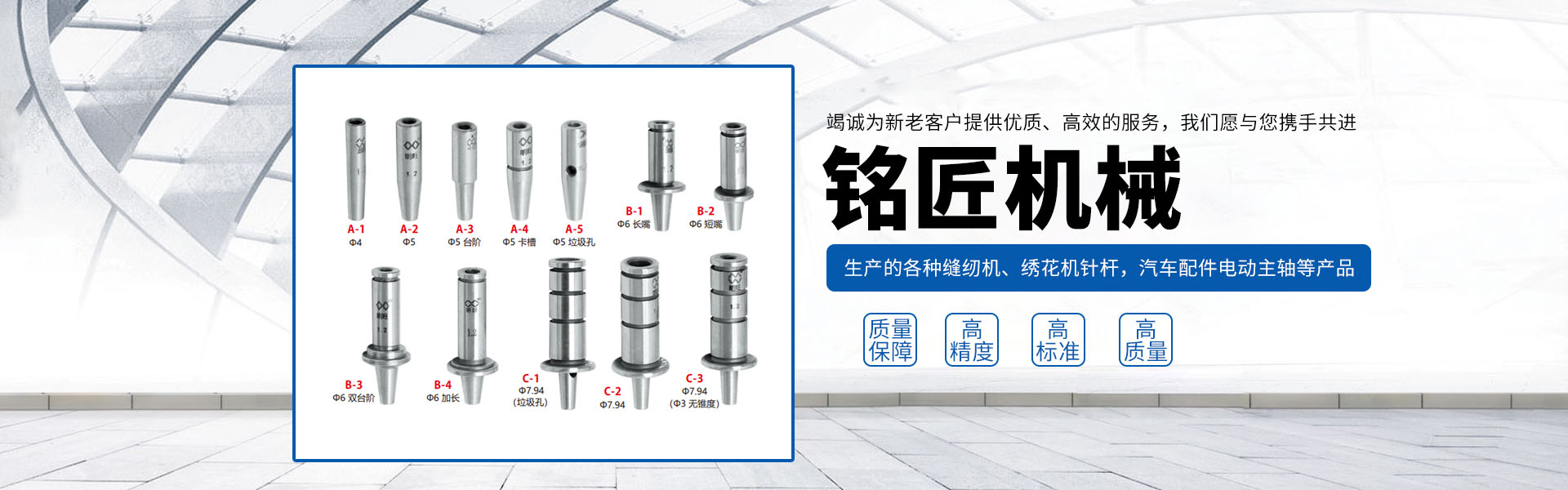 由本廠生產(chǎn)的各種縫紉機(jī)、繡花機(jī)針桿,汽車配件電動(dòng)主軸,以及使用于紡織機(jī)、皮革機(jī)、傳真機(jī)、印刷機(jī)、鞋機(jī)、眼鏡片磨機(jī)等各種機(jī)床上的軸套類配件產(chǎn)品,以其高標(biāo)準(zhǔn)、高精度、高質(zhì)量的特點(diǎn),頗受客戶信賴。